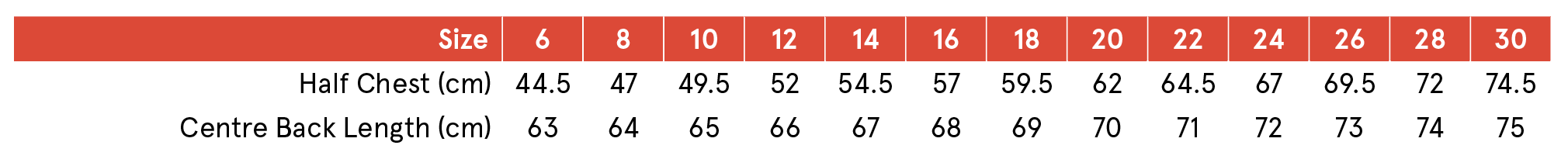 Click here for size chart