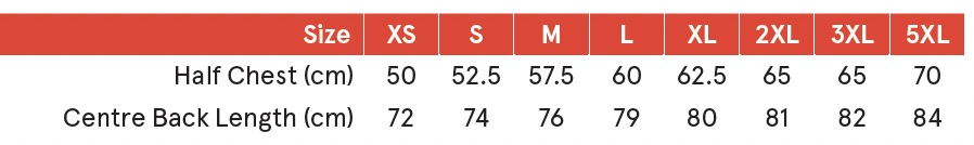 Click here for size chart